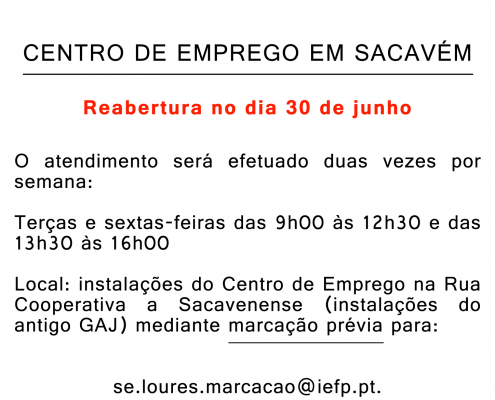 O “Grupo de Trabalho de Famílias da Comissão Social das Freguesias de Sacavém e Prior Velho”, vem convidar à participação na sessão informativa dinamizada pelo “Espaço Vida” da Câmara Municipal de Loures, a realizar no próximo dia 16 de dezembro, pelas 10h30, no...