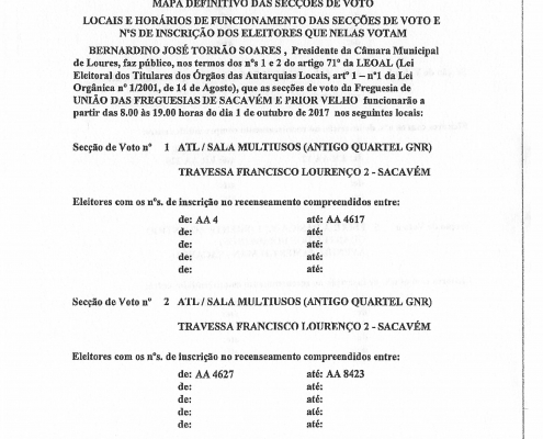 UNIÃO DAS FREGUESIAS DE SACAVÉM E PRIOR VELHO