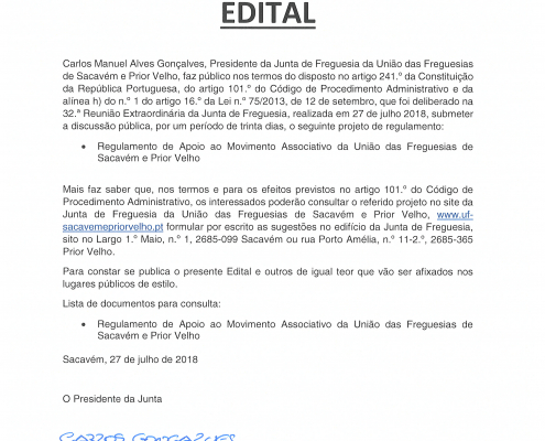 UNIÃO DAS FREGUESIAS DE SACAVÉM E PRIOR VELHO