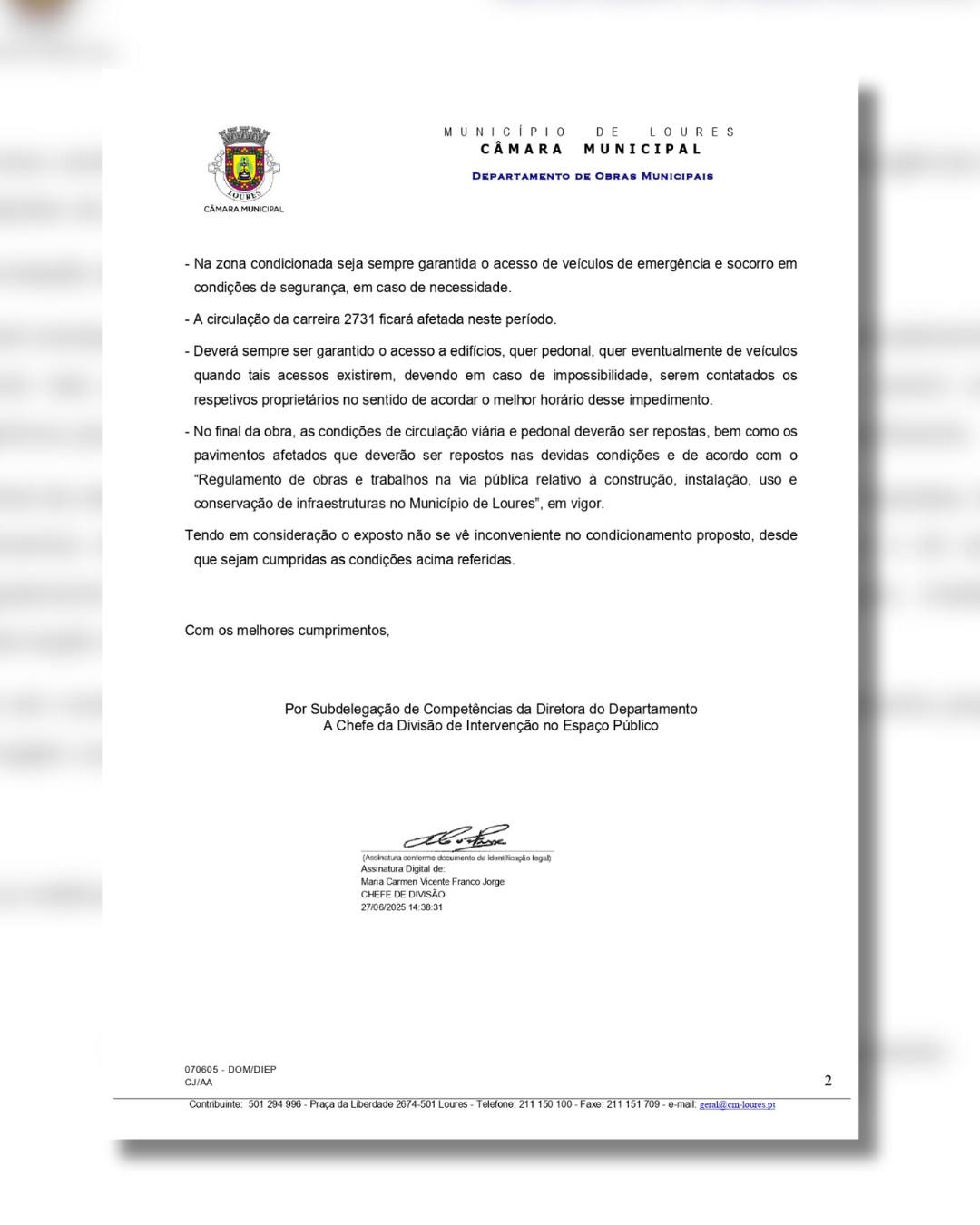 Pedimos desde já a compreensão da população para eventuais constrangimentos, em particular nos condicionamentos de trânsito no decurso dos trabalhos.