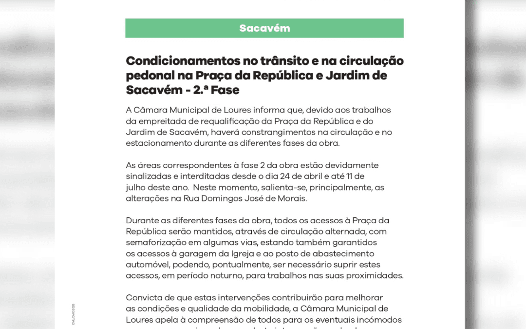 COMUNICADO | CÂMARA MUNICIPAL DE LOURES | IMPLEMENTAÇÃO MEDIDAS DE ACALMIA DE TRÁFEGO – RUA MARECHAL ANTÓNIO SPÍNOLA E ESTRADA MILITAR | URBANIZAÇÃO TERRAÇOS DA PONTE | 2 DE DEZEMBRO
