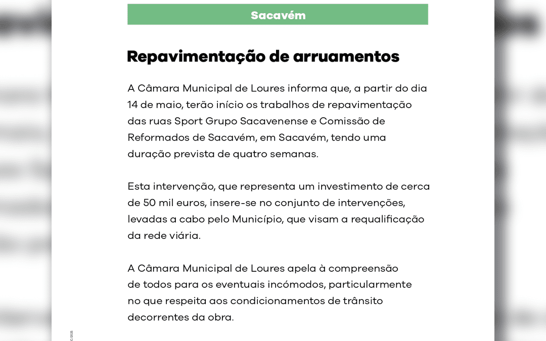 MELHORIA E REQUALIFICAÇÃO DO ESPAÇO PÚBLICO | SACAVÉM