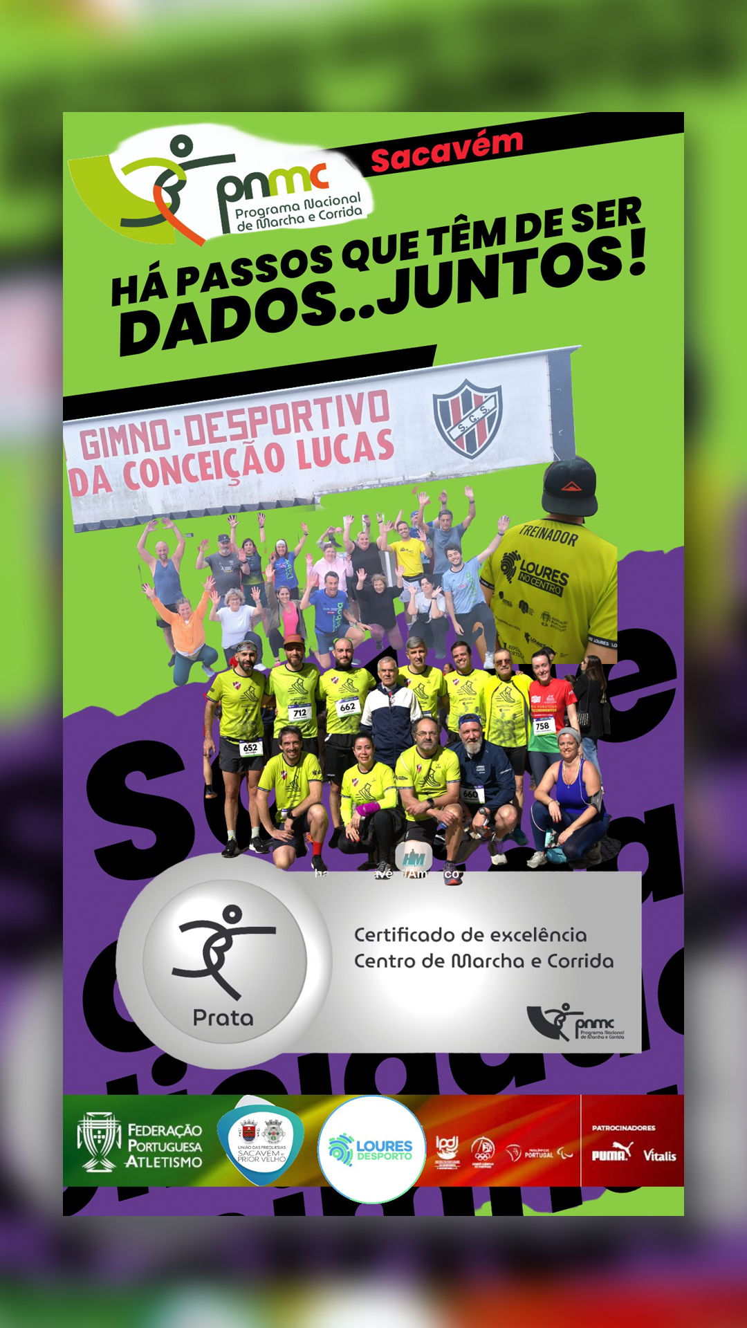 O nosso “Centro Municipal de Marcha e Corrida de Sacavém”, recebeu da Federação Portuguesa de Atletismo, o Certificado de Excelência do Programa Nacional de Marcha e Corrida – PNMC – Selo de Excelência Prata, correspondente à classificação atribuída ao “Programa Nacional Marcha e Corrida Sacavém”, como forma de reconhecimento pelo trabalho que tem vindo a ser desenvolvido. A missão deste projeto é chegar cada vez mais longe na comunidade, promovendo a saúde física, mental e a socialização.