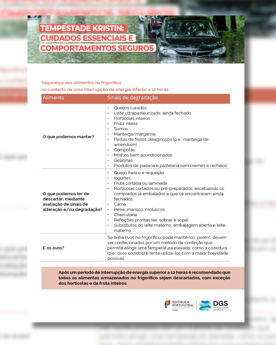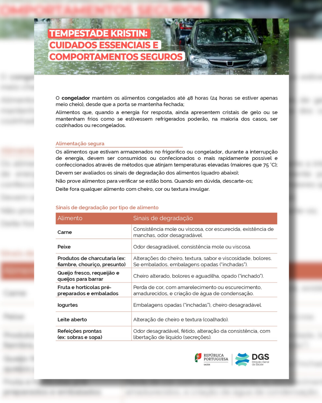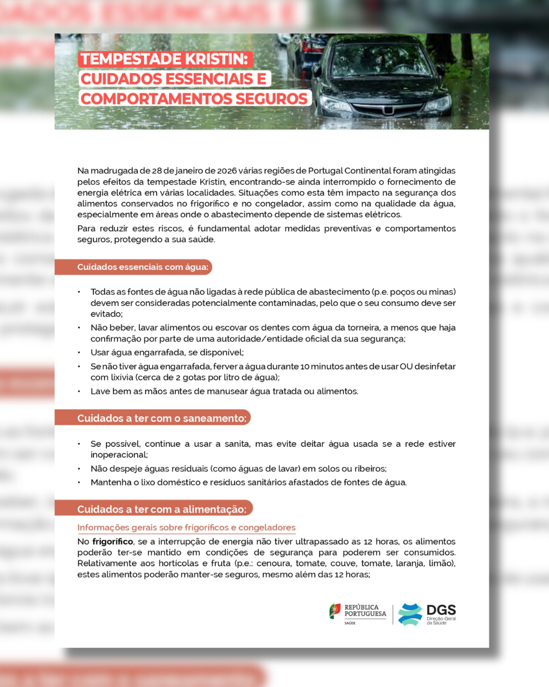INFORMAÇÃO | DGS | TEMPESTADE KRISTIN: CUIDADOS ESSENCIAIS E COMPORTAMENTOS SEGUROS