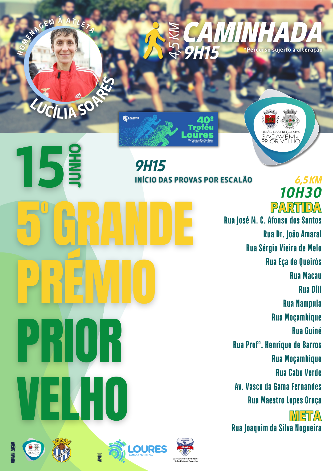 INSCRIÇOES ABERTAS | 5º GRANDE PRÉMIO DO PRIOR VELHO | 40º TROFÉU “CORRIDA DAS COLETIVIDADES DO CONCELHO DE LOURES” | 15 DE JUNHO
