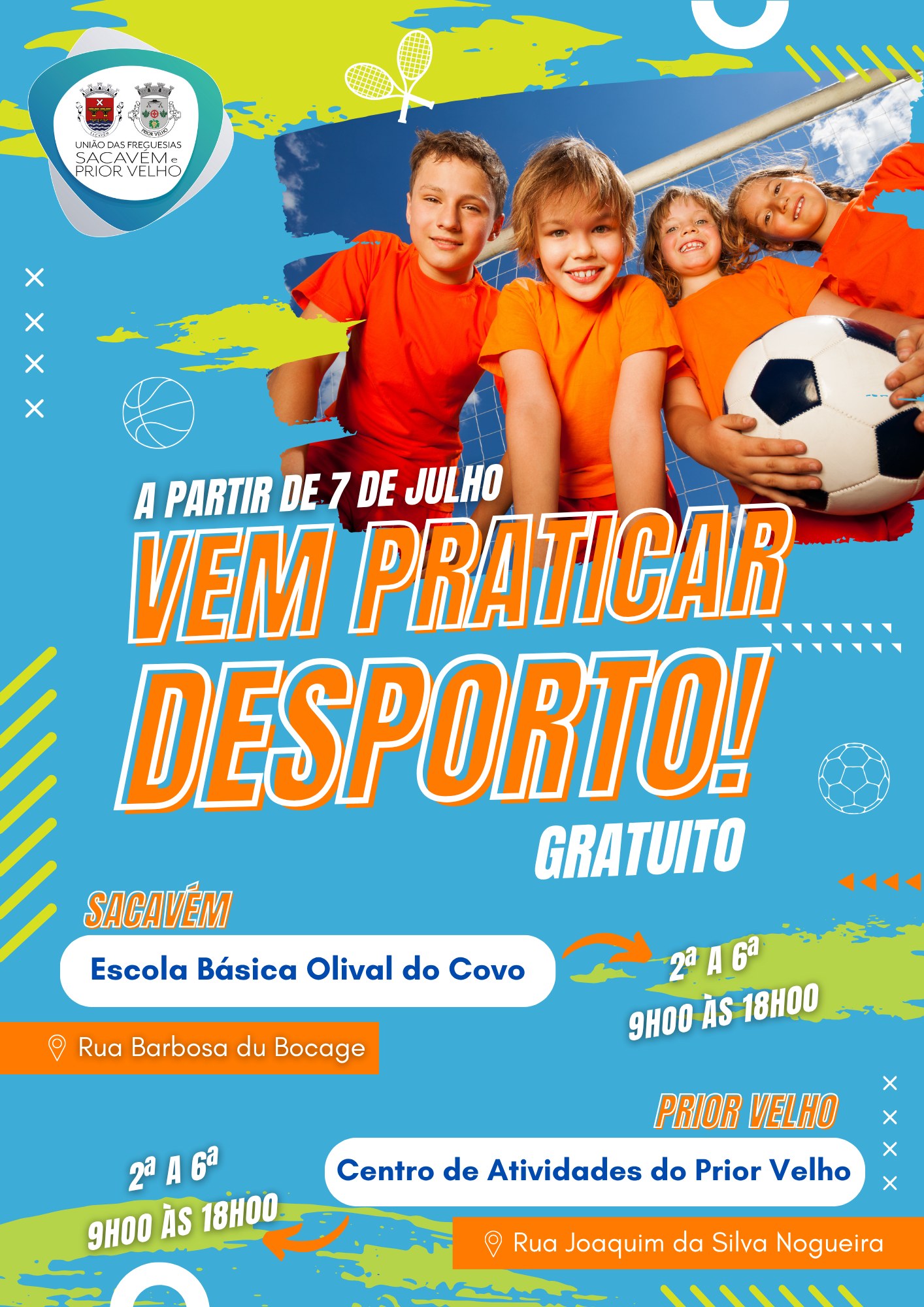 A partir do dia 7 de julho, a União das Freguesias de Sacavém e Prior Velho coloca à disposição, gratuitamente durante os dois meses, as instalações da Escola Básica Olival do Covo, em Sacavém e o Centro de Atividades do Prior Velho, para a prática de atividades desportivas, como o basquetebol, futebol, entre outros.