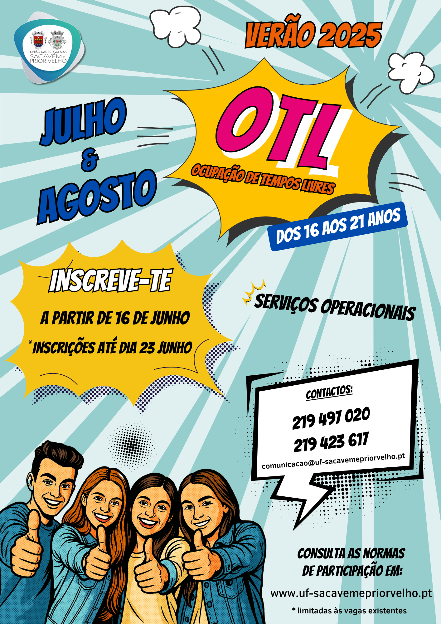 O “POTL – Projeto Ocupação de Tempos Livres” é destinado a jovens dos 16 aos 21 anos de idade, residentes na freguesia de Sacavém e Prior Velho, assim como a jovens que já efetuaram estágio nesta Junta de Freguesia.