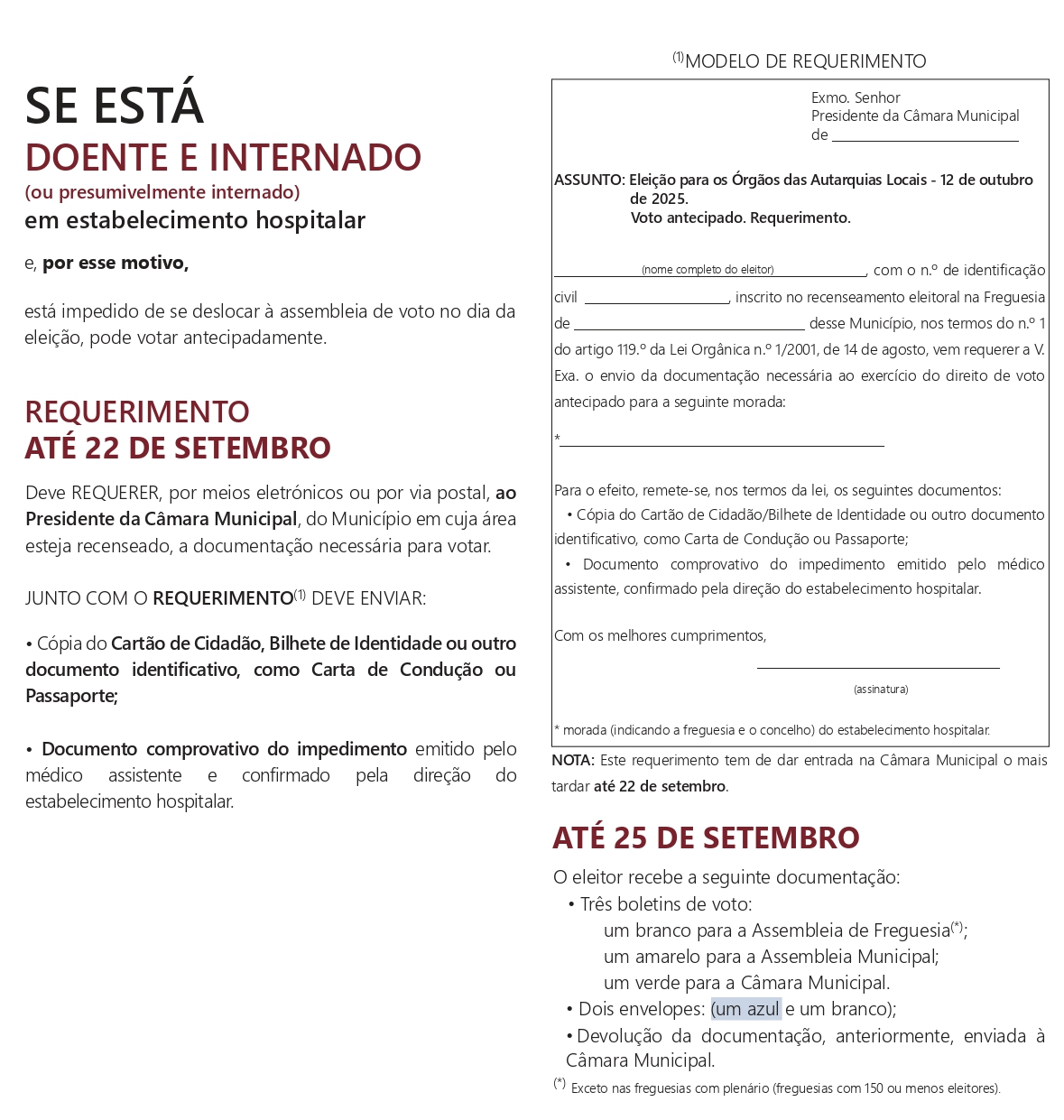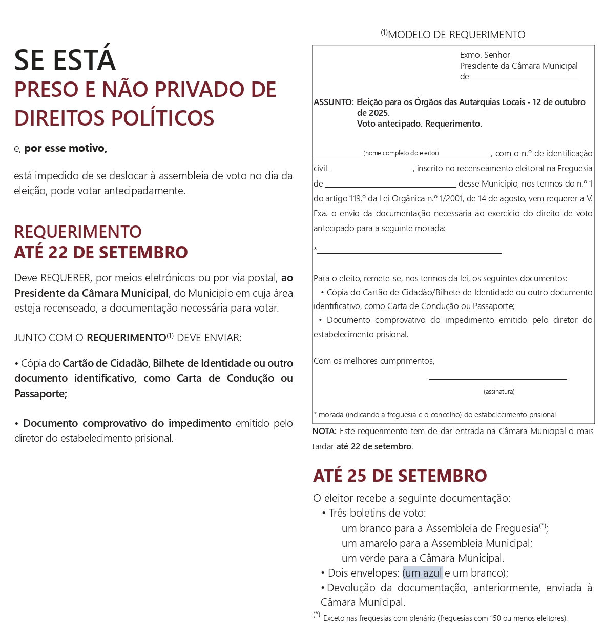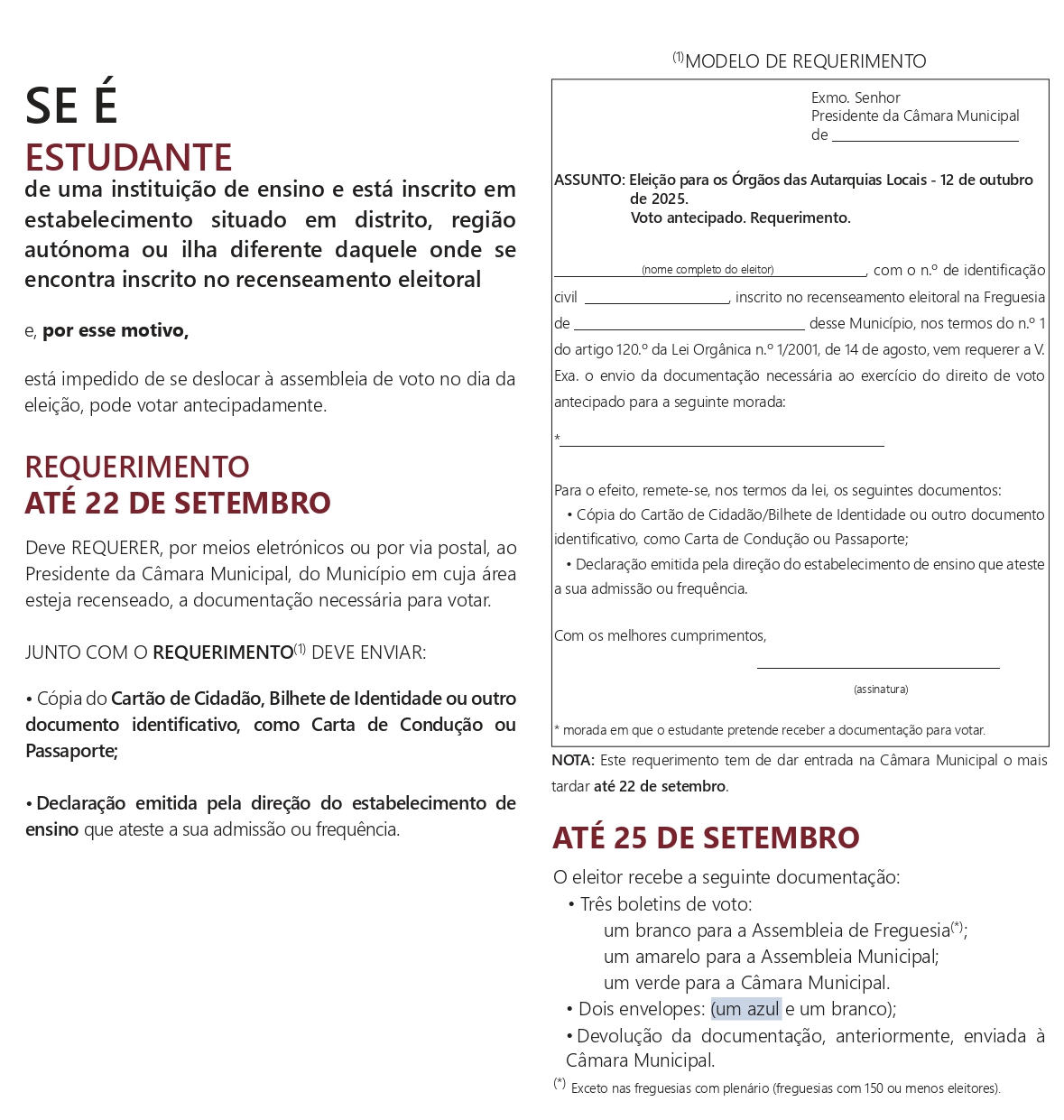 Até 22 de setembro – envie requerimento ao presidente da câmara do município em que se encontre recenseado.