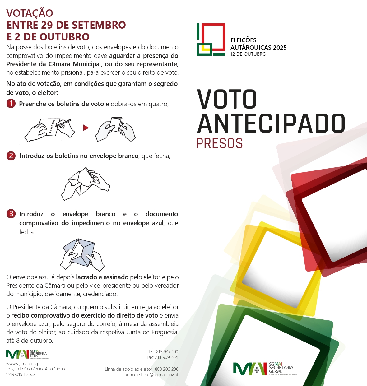 O voto antecipado é a opção para todos os eleitores que pretendam exercer o seu direito de voto.