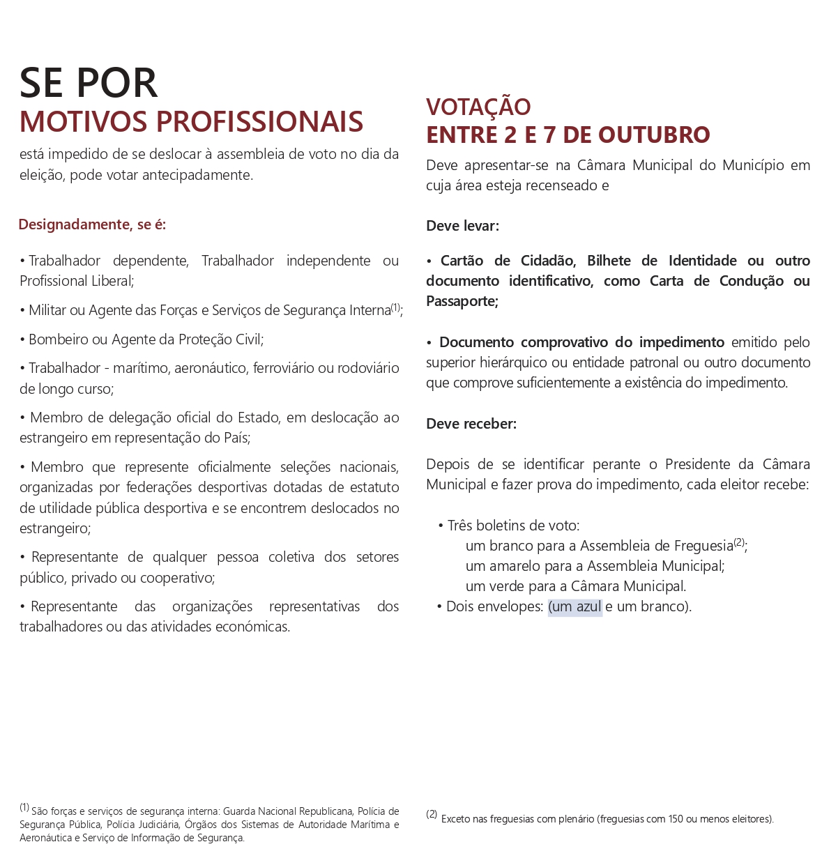 Entre 2 e 7 de outubro – vote na câmara do município onde está recenseado.